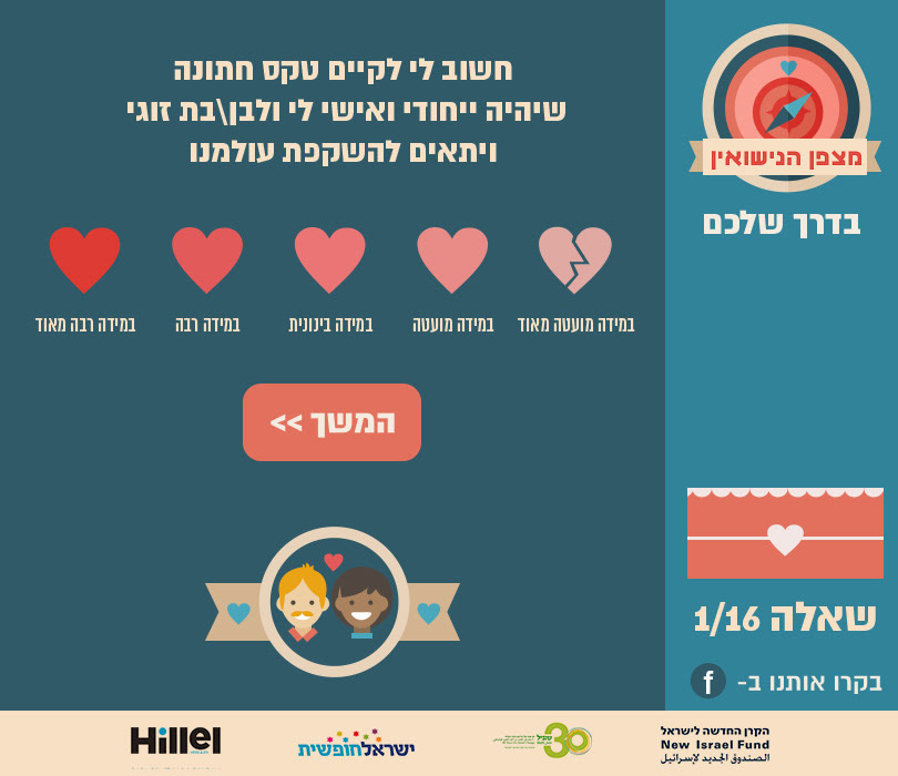 Online Quiz Design about Marriage options in Israel, Created to raise the discussion about marriage for all. Created with Dice Marketing.
