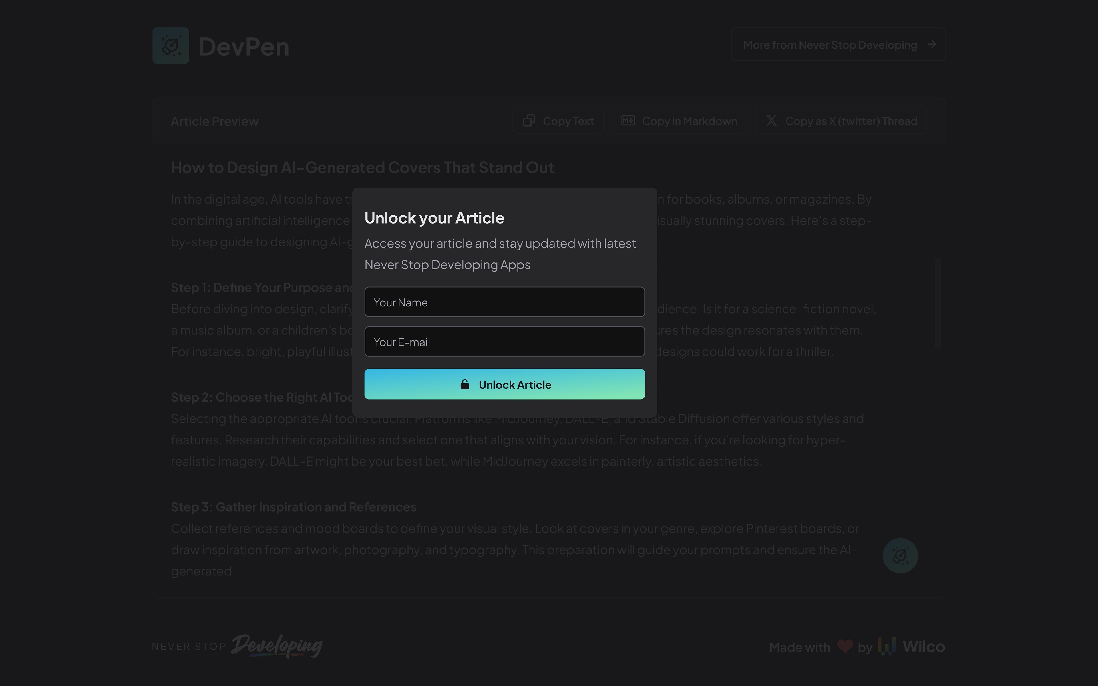 - Wilco Studio: AI-Powered Internal and client-facing tool to turn tutorials or blog posts into interactive quests